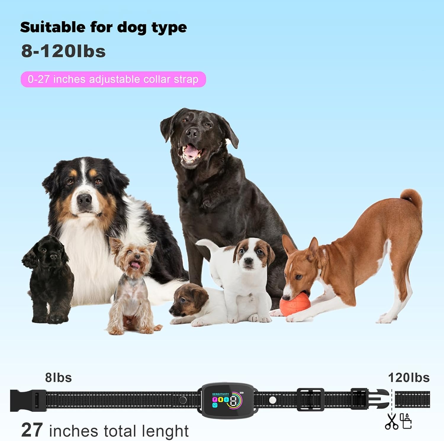 HEYInova Dog Bark Collar,No Shock Smart Collar for Dog Training,Rechargeable No Bark Collar,with 8 Adjustable Sensitivity & Beep Vibration Modes,for Large Dog, Medium Dog, Small Dog