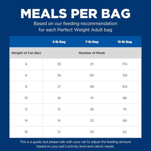 - Hill's Science Diet Adult Perfect Weight dry cat food is breakthrough nutrition formulated to help adult cats achieve a healthy weight and improved quality of life