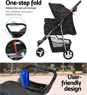 i.Pet - Pet Stroller Pram Dog Cat Carrier Travel Pushchair Foldable 3 Wheels Large