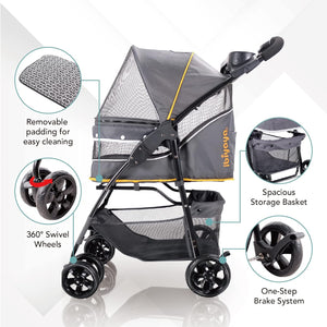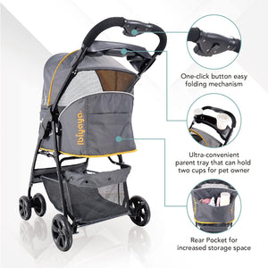 Ibiyaya - Cloud 9 Pet Stroller for Cats & Dogs up to 20kg - Mustard Yellow