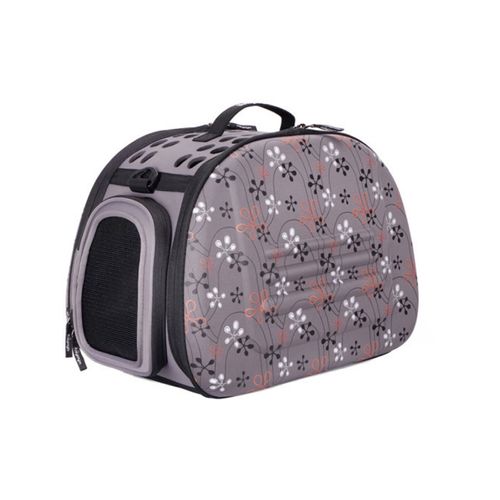 Ibiyaya - Collapsible Traveling Shoulder Pet Carrier for Cats & Dogs - Grey with Flowers