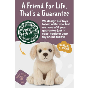 This gorgeous golden retriever puppy plush toy from Living Nature is perfect for people who can’t have their own canine companion, or for people who want to take theirs everywhere they go! All of our animal soft toys come with educational fact tags, with general information, as well as their behaviour and diet inside! Learn, play and keep forever. These industry leading, high-quality toys are super realistic and there are over 120 animals to collect. Start with your favourite and build your animal family. The Living Nature cuddly toys are great gifts for kids and adults alike, animal lovers of any age will love having their favourite doggy breeds to keep in their homes. This travel-friendly pooch is 16cm long, so is great for people who miss their real furry friends while they are away! These toys are not suitable for babies under 36 months due to small parts. Remove tag before giving to a child. Hand wash only.