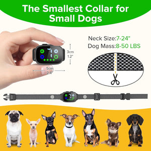 Dog Bark Collar Just for Small Dog: The bark collar for small dogs 5-15lbs, anti bark collar has a light weight and looks specially designed for small dogs. In addition, the adjustable size ensures that it is more comfortable for your dog to wear and does not put an extra burden on your dog. A quality choice for Chihuahuas, Teddies, Dachshunds, Shih Tzus, Bichon Frises and other small dogs.