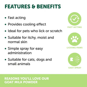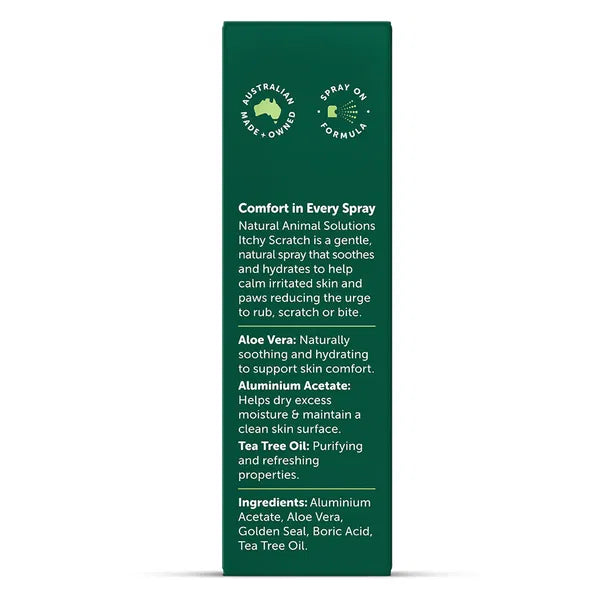Natural Animal Solutions Itchy Scratch contains natural ingredients with aluminium acetate solution mixed with the finest plant extracts. This powerful solution acts quickly in soothing the itchy areas. The active ingredients are exclusively selected to provide fast action without the side effects that the other products may cause. It comes in a handy spray applicator for easy administration even to those hard to reach areas.