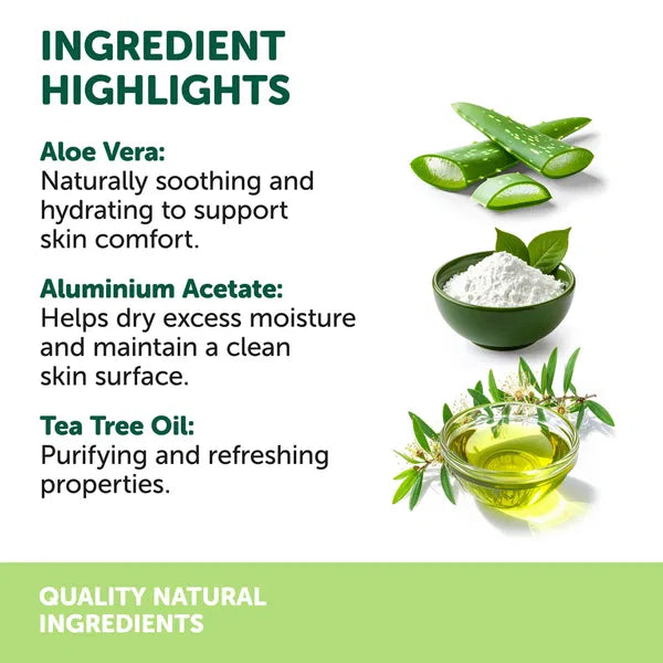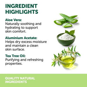 | Key Ingredients | Aluminium acetate solution Aloe Vera Golden Seal Boric Acid Tea tree oil 2% |