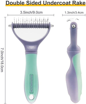 Fur is flying everywhere and you don't know what to do about it? PAKEWAY Purple & Green T10 Dematting Rake is here to the rescue! Amazing grooming tool that easily removes pesky mats, tangles, knots & dead undercoats and helps promote healthy circulation and a shiny coat. The 3.5mm tooth pitch makes it easy to smooth out tangles and knots, and the ergonomic anti-slip grip makes it comfortable and convenient to use keeping your furry friend looking their best always!