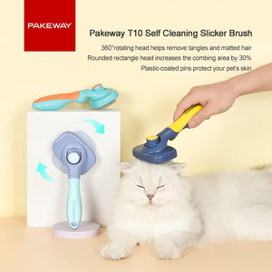 Pakeway - T10 Selfcleaning Slicker Brush for Short or Long Cat and Dog