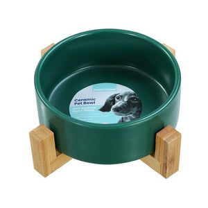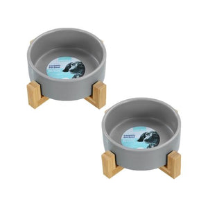 Paws and Claws - 13cm/380ml Ceramic Pet Bowl w/ Bamboo Stand - Assorted - 2x