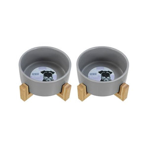 Paws and Claws - 16cm/950ml Ceramic Pet Bowl w/ Bamboo Stand - Assorted - 2x
