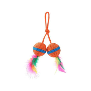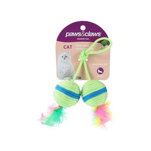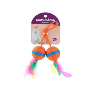 Paws and Claws - 20cm Twin Ball & Feather Catnip Toy - Assorted - 2x