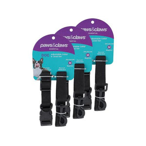 Paws and Claws - Essentials Dog Collar & Lead Set Assorted 3x 2pc