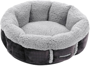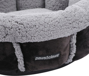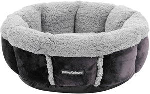 Paws & Claws - Primo Plush Snuggler Round Shape Pet Bed, Lite Grey/Charcoal, 50 x 50 x 20 cm