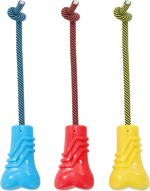 Paws & Claws Tri Sport Bone Tugger Dog Toy is perfect for interactive playtime, providing entertainment and exercise for dogs of various sizes and energy levels. combines tugging, chewing and throwing all into one, providing endless hours of fun for your pooch. Plus, squeaks are hidden inside for extra excitement. Promotes physical activity and engagement between pets and their owners, encouraging bonding. Useful for training exercises and games, helping to keep dogs mentally and physically stimulated. Lightweight, easy to handle and carry during walks or outings, making it a convenient toy for active dogs. Vibrant color enhances visibility, making it easy to spot during outdoor play. Size: 23 x 7.6 x 5.8 cm.