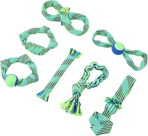 Paws & Claws - Tug-of-War Rubber Core Rope Dog Toy, Blue/Green, 30 cm
