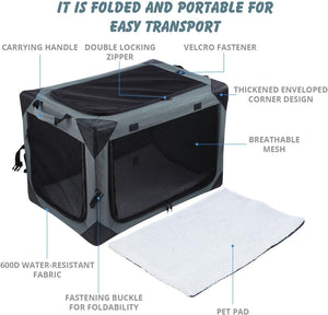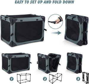 Pet Scene Foldable Soft Pet Crate Travel Indoor/Outdoor Soft Foldable bag Grey (81x58.5x58.5cm)