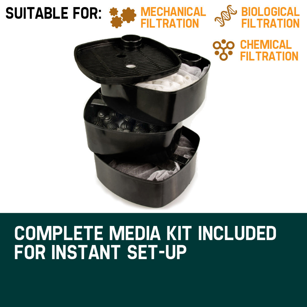 Mechanical Filtration - Add mechanical filter pads to effectively remove unsightly particles from the water, including fish excrement, sludge, uneaten food and dust.