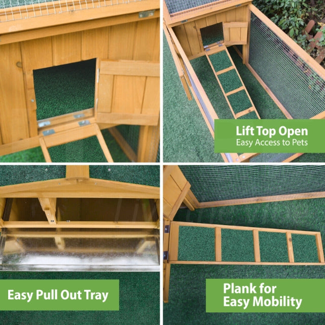Safety and Security - With a secure locking system and predator-resistant mesh, our pet hutch provides a protective environment, keeping your furry friends safe from potential threats in the wild.Low Maintenance - Say goodbye to hours of cleaning and maintenance. The TOPET Pet Hutch is designed for easy cleaning, allowing you to spend more quality time with your pets and less time on upkeep.Versatile Living - The TOPET Pet Hutch is designed to accommodate a variety of pets, from rabbits and guinea pigs to birds and small poultry, offering a versatile living space for different animal companions.Peace of Mind - Rest easy knowing that your pets are safe and comfortable in their TOPET Pet Hutch, giving you the peace of mind you deserve as a pet owner.Durable Investment - Our hutch is built to last, providing you with a long-term solution for your pet's shelter needs, saving you money in the long run and ensuring your pets are always well taken cared of.Specifications