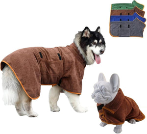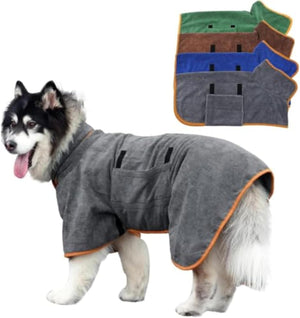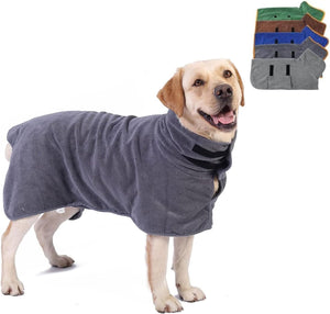 RYUREI - Dog Drying Coat - Microfiber Pet Bathrobe, With Adjustable Collar & Belly Strap