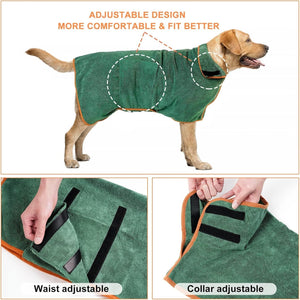 - 【Easy to put on and take off】- Our Dog Bath Coat Designed with Magic Tape on Collar and Waist, Just pop it over your dog's head and adjust waist and neck range with hook and loop according to your dog size and take off quickly by the magic tape.