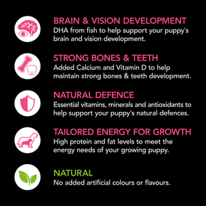 • Natural Defence - Essential vitamins, minerals and antioxidants to help support your puppy's natural defences