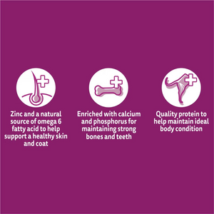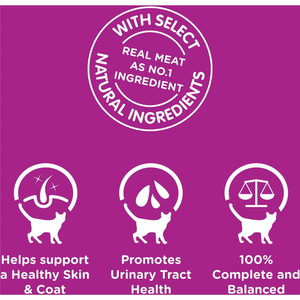 It’s cat’s independent, free-spirited nature that we admire. But even an independent spirit needs love and care. And it’s their return to your arms that truly touches your heart. Whiskas brand understands cats behaviours, needs and loves. That’s why we can help you care for them in the best way possible.WHISKAS So Meaty 1+ Years cat food range is specially designed for adult cats with the right balance of protein, vitamins and minerals needed to support an active and healthy lifestyle.Zinc and a Natural Source of Omega 6 Fatty acid to help support a healthy skin and coat.Promotes urinary tract health through a high moisture diet that ensures adequate water intake.Enriched with calcium and phosphorus for maintaining strong bones and teeth.
