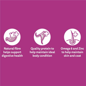 Contains Omega 6 and Zinc to help maintain a healthy skin and coat.