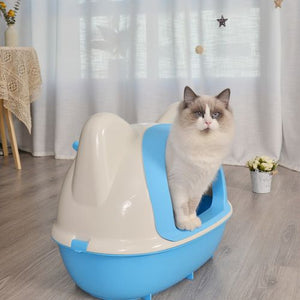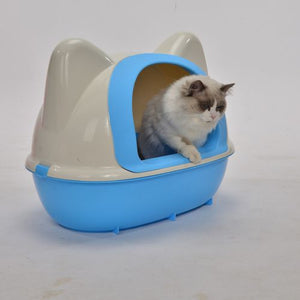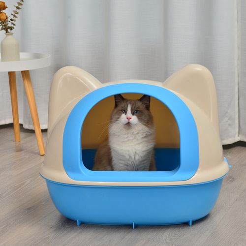 Large Hooded Cat Toilet Litter Box Tray House With Scoop Blue