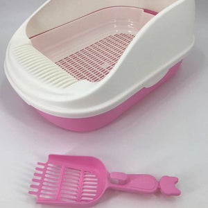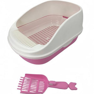 YES4PETS - Large Portable Cat Toilet Litter Box Tray with Scoop and Grid Tray - Pink