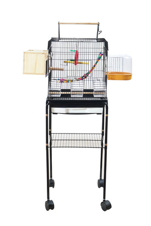 YES4PETS Medium Size Black Bird Cage Parrot Budgie Aviary with Perch Stand and Castor Wheels