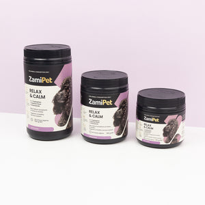 ZamiPet Relax & Calm is a great tasting, breakable Australian-made chew for reducing the symptoms of stress and anxiety in dogs. ZamiPet Relax & Calm Supplement for Dogs is ideal for supplemental feeding during stressful conditions like separation, fireworks, thunderstorms, groomer visits, vet visits, and travelling, and for calming the nerves of show dogs. It is a non-drowsy formula developed by Australian vets that calms anxious dogs without making them sleepy.