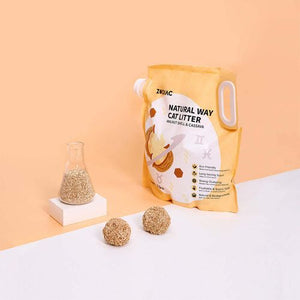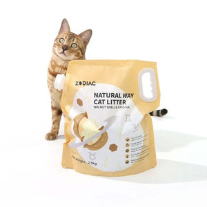 tired of clumpy, dusty, and artificial-smelling cat litter? It's time to switch to zodiac natural way walnut shell & cassava cat litter! Our all-natural formula is made from renewable resources, providing a gentle and comfortable litter experience for your furry friend. With our dust-free and odour-controlling formula, cleaning your cat's litter box has never been easier! Plus, it's safe to flush in small amounts, making it an earth friendly choice for cat owners who want to reduce their earth impact. Say goodbye to the mess and hello to a happy, healthy cat and a clean, fresh-smelling home with zodiac natural way cat litter.